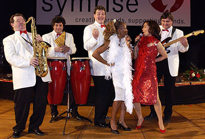 Party atmosphere is at its best for our international show band, various comedy acts and fantastic walk acts. The show's main stage is shown on several giant screens and recorded on video.