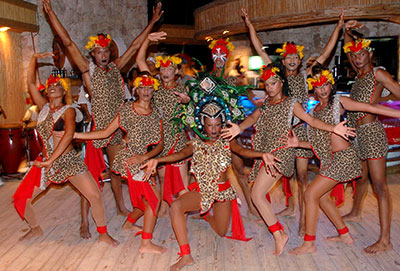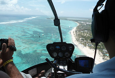 No river and no mountain can stop us on the off-road jeep safari. It goes straight through the jungle, along the Atlantic beach, and is a real adventure. The cigar and rum factory, a cave tour and “Altos de Chavon” are interesting, but the speed boat race is the best fun. From a helicopter, you can see the island paradise from above, or you can go deep-sea fishing, play golf or relax with a massage in the beach cabanas. Brightly painted buses with a thatched roof, cocktails and live music take us to “Jellyfish Beach Club”, where we experience a spectacular farewell dinner with dancing and a fire show at the sea. Life is glorious.