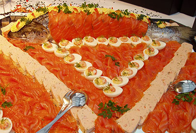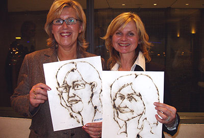 A caricaturist cartoons guests with sparklers instead of with a pen. Highlights from musicals and spirituals alternate performing with a disc jockey team.